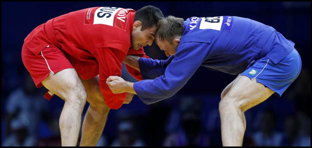 2. Combat Sambo: o Descrição: Esta vertente combina técnicas de luta livre, judô e striking (golpes), sendo mais voltada para o combate real. É utilizada por militares e forças de segurança devido à sua eficácia em situações de confronto. o Equipamentos: Os praticantes usam equipamentos de proteção, como luvas, protetores bucais, de canela e coquilha, para garantir a segurança durante as lutas. o Objetivo: Preparar os praticantes para situações de combate real, ensinando técnicas de autodefesa e combate corpo a corpo.